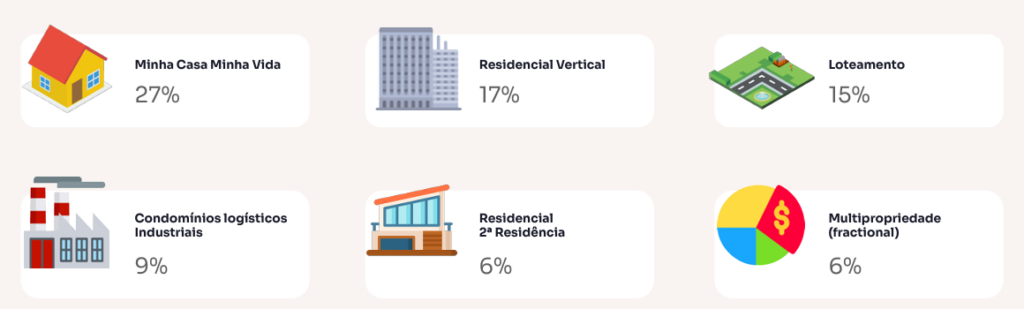 O intuito da pesquisa foi avaliar a percepção de empreendedores de todo o Brasil sobre a conjuntura econômica atual e as perspectivas para o mercado imobiliário em 2025. Nesse sentido, podemos conferir os resultados sob a ótica dos seguintes segmentos: