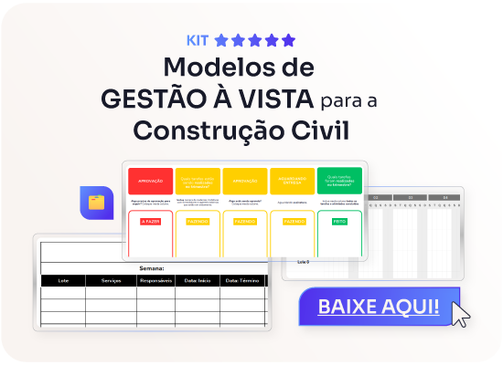 O Kit Modelos de Gestão à Vista para a Construção Civil foi pensado justamente para esse momento: tornar o que já está planejado em painéis claros, visuais e acessíveis para toda a equipe, no canteiro e no escritório.